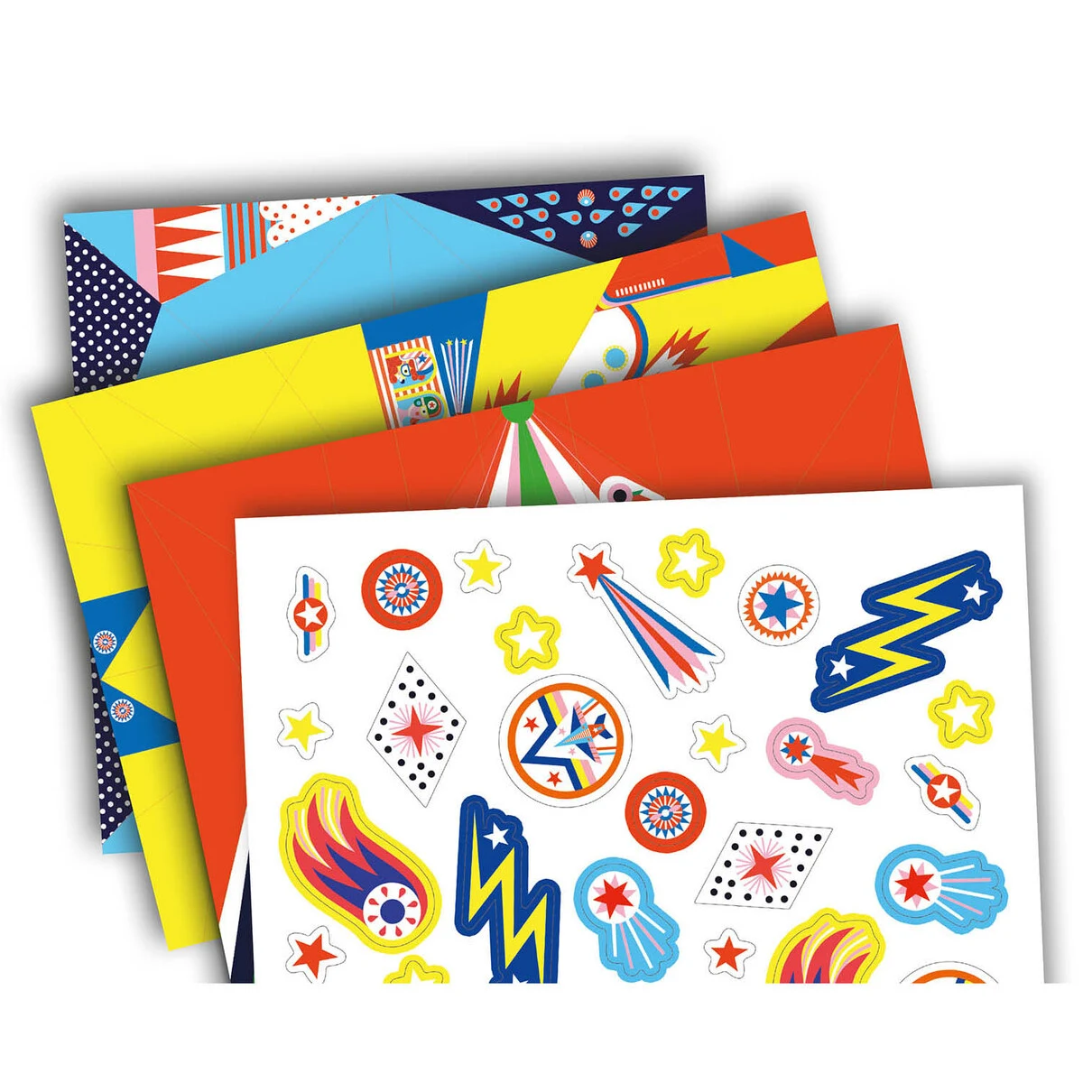 Sæt med 20 vilde papirfly til at folde og dekorere med de medfølgende klistermærker.