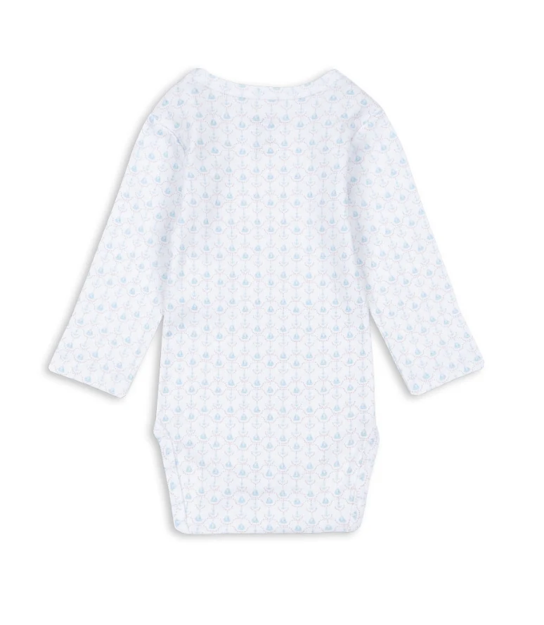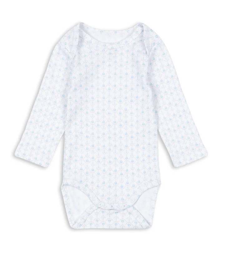 Blød bodysuit i økologisk bomuld med lange ærmer. Lavet i en fleksibel ribkant med en praktisk kuvertudskæring, der gør den nem at tage af og på, samt nemme trykknapper mellem benene til bleskift. Lavet af 100% økologisk bomuld. Dette produkt indeholder 100% OCS-certificeret bomuld, certificeret af CU1094701.