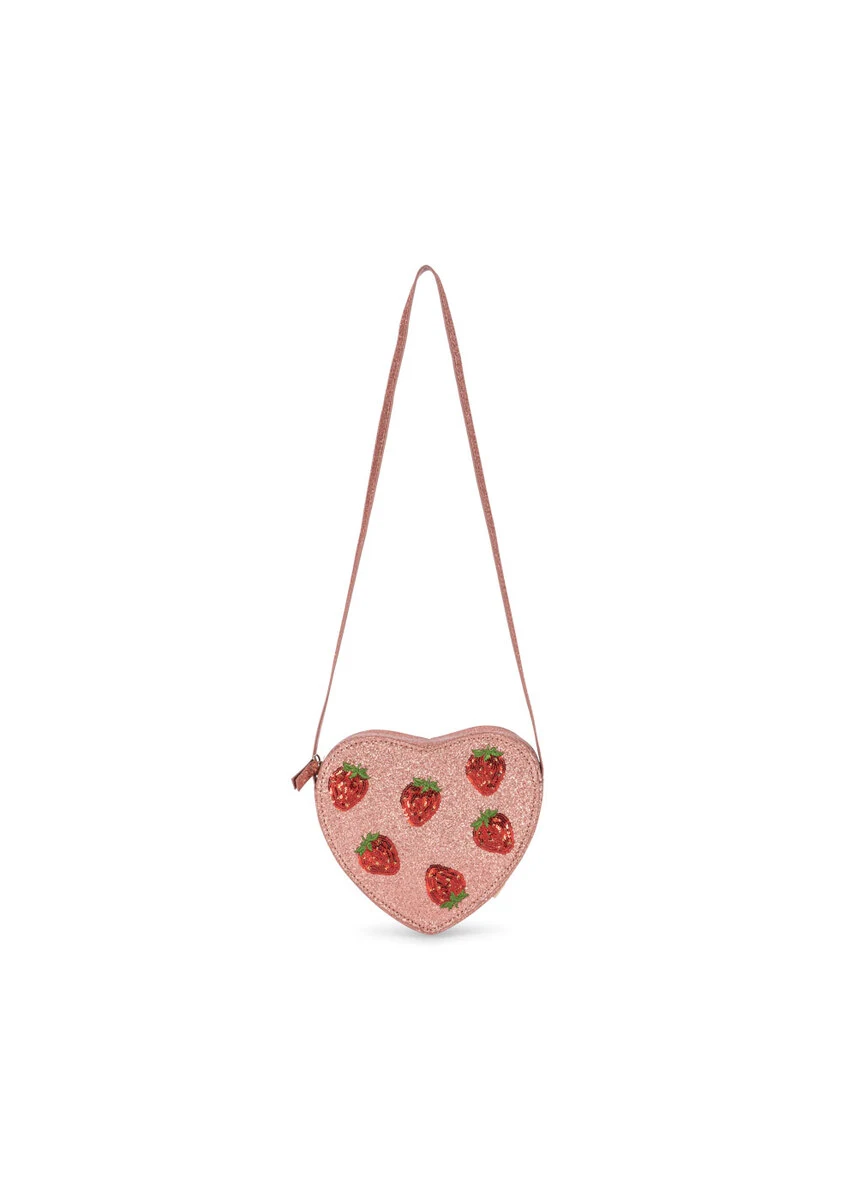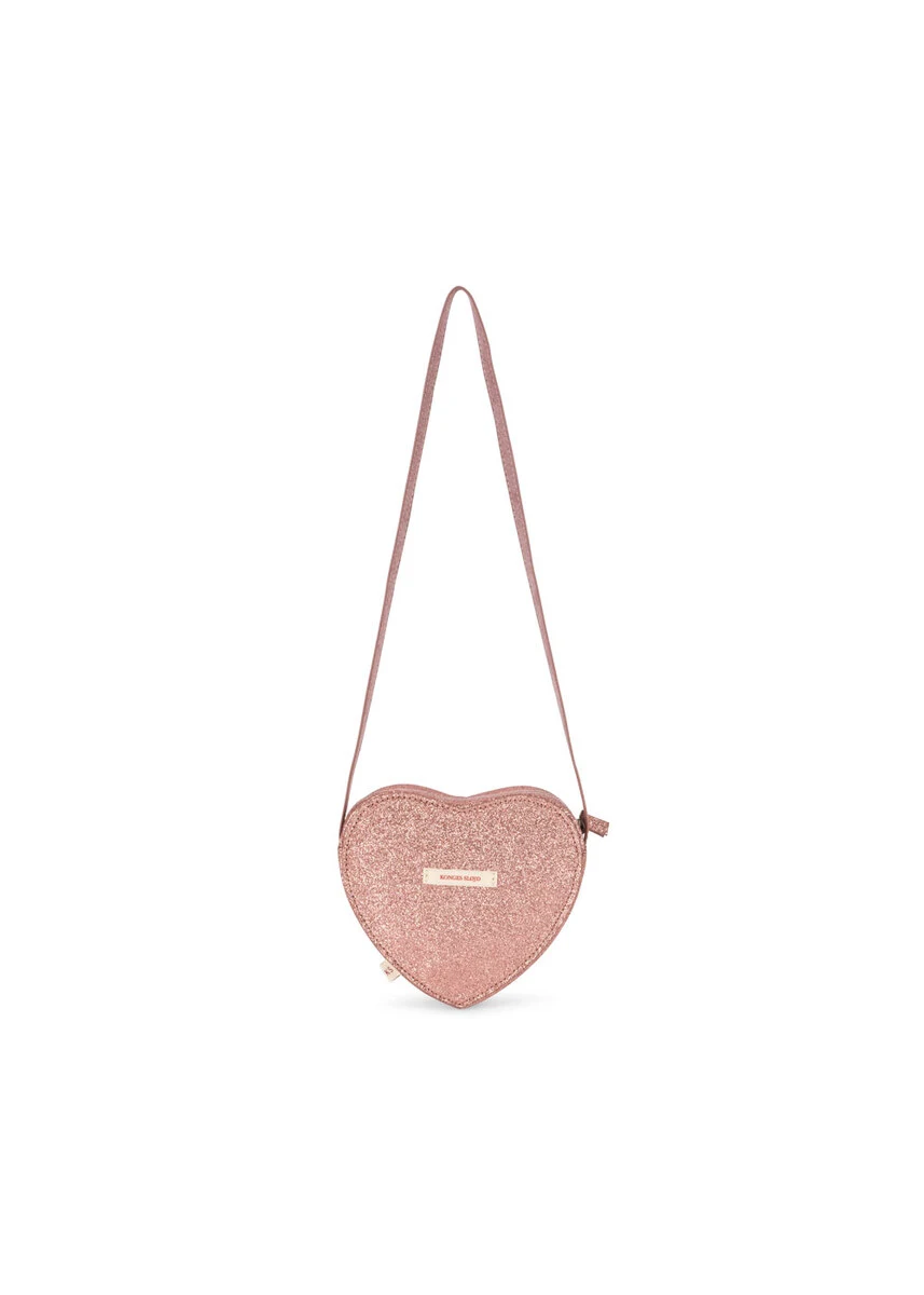 Hjerteformet skuldertaske med glitrende glimmer foran og smal skulderrem. Perfekt til alle de små nødvendigheder. Velegnet til børn fra 3 år.