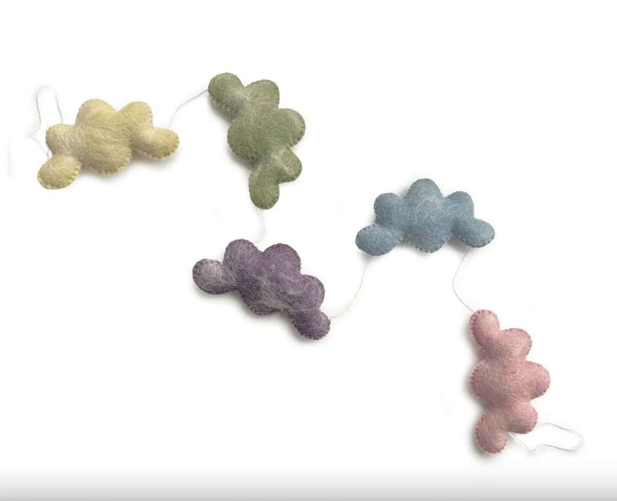 Denne charmerende guirlande med skyer er den perfekte tilføjelse til ethvert børneværelse. Med dens bløde og smukke design kan den hænges på sengen, væggen eller et hvilket som helst sted på babyværelset for at skabe en hyggelig og dekorativ atmosfære.