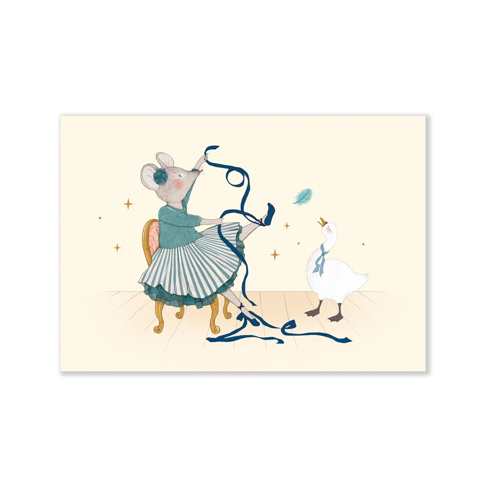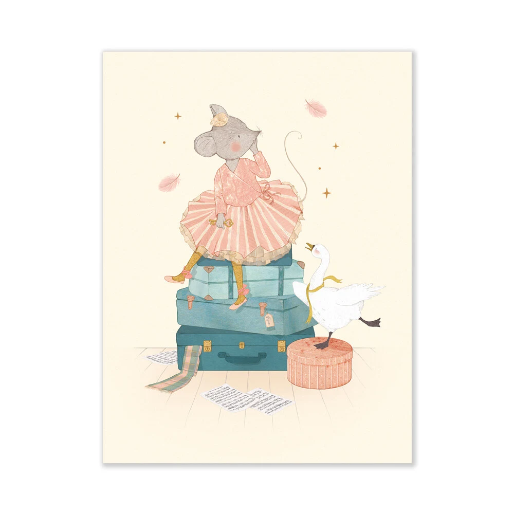 Sæt med 3 plakater illustreret med små mus og deres svanevenner i fine motiver som skildrer den poetiske verden fra La petite école de danse.