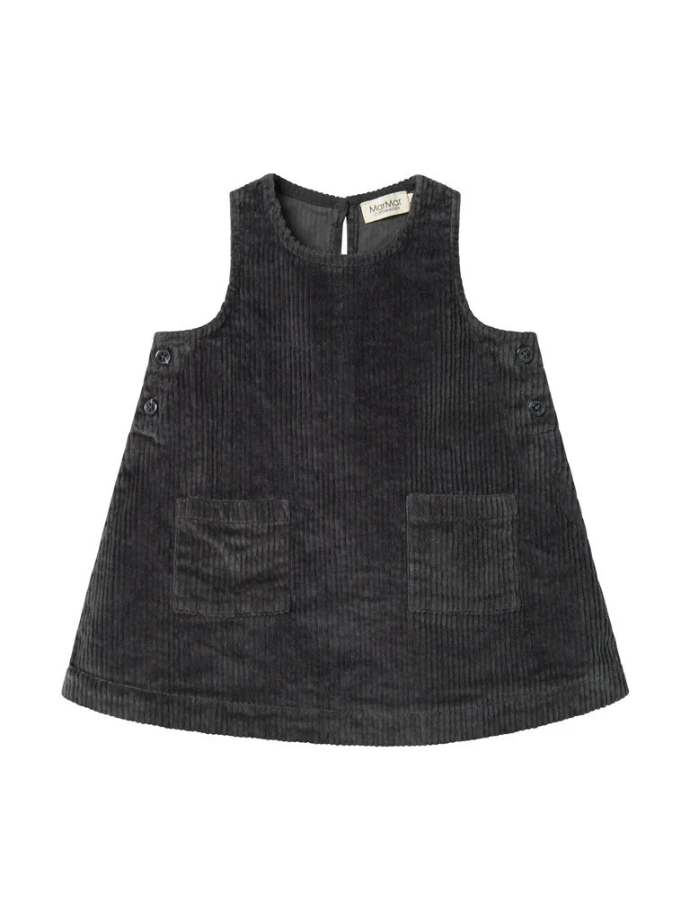 Flot kjole, uden ærmer. Kjolen er af lidt tykkere materiale, og har flot lommedetalje foran på kjolen.