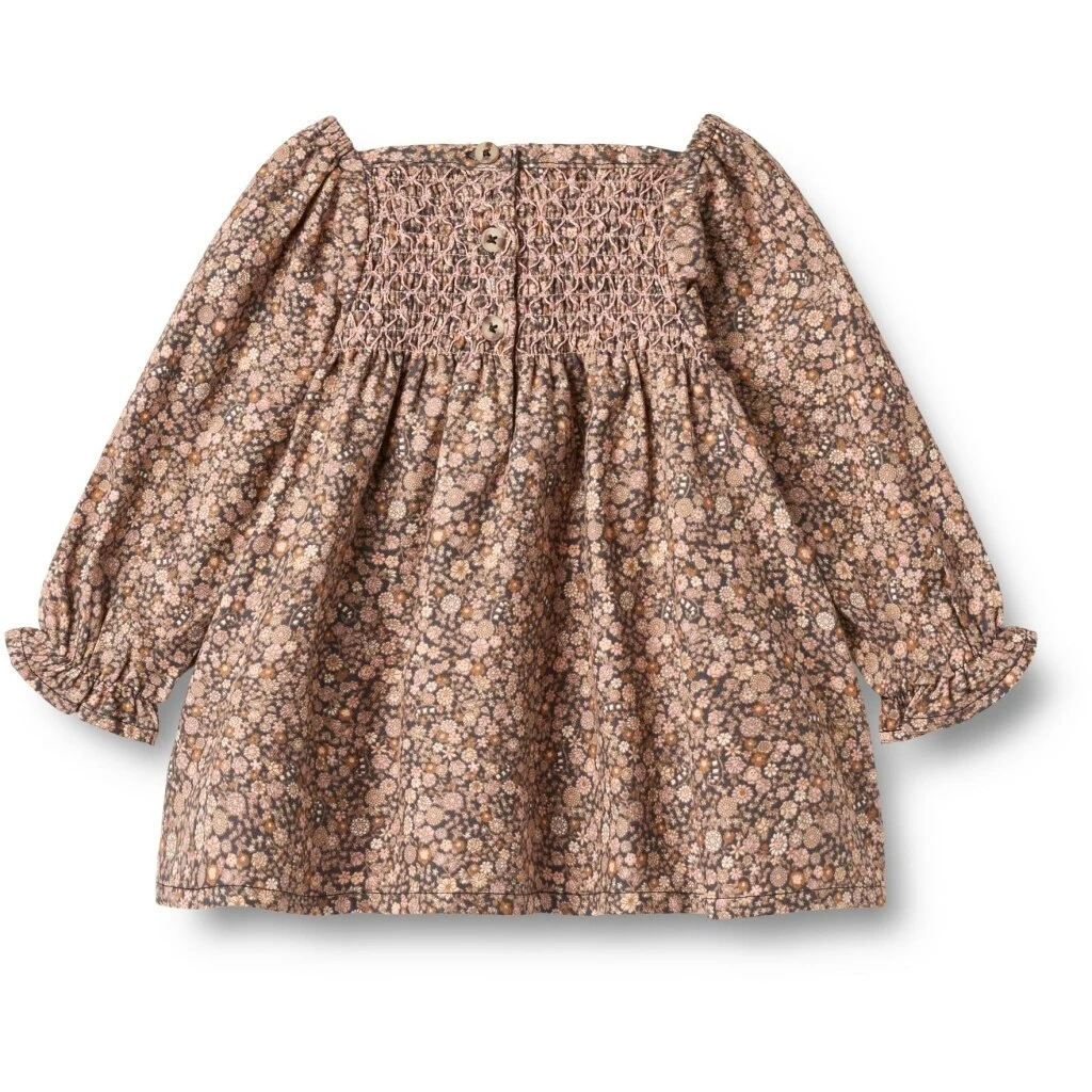 Lækker langærmet kjole med smockdetaljer lavet af blød økologisk bomuld til din baby.