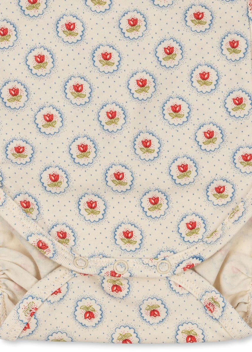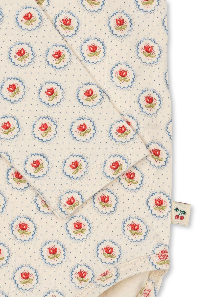 Blød langærmet body lavet af økologisk bomuld blandet med elastan for holdbarhed og et strejf af stretch. Designet med trykknapper i skridtet for nem påklædning. GOTS, Økologisk, certificeret af CU1094701
