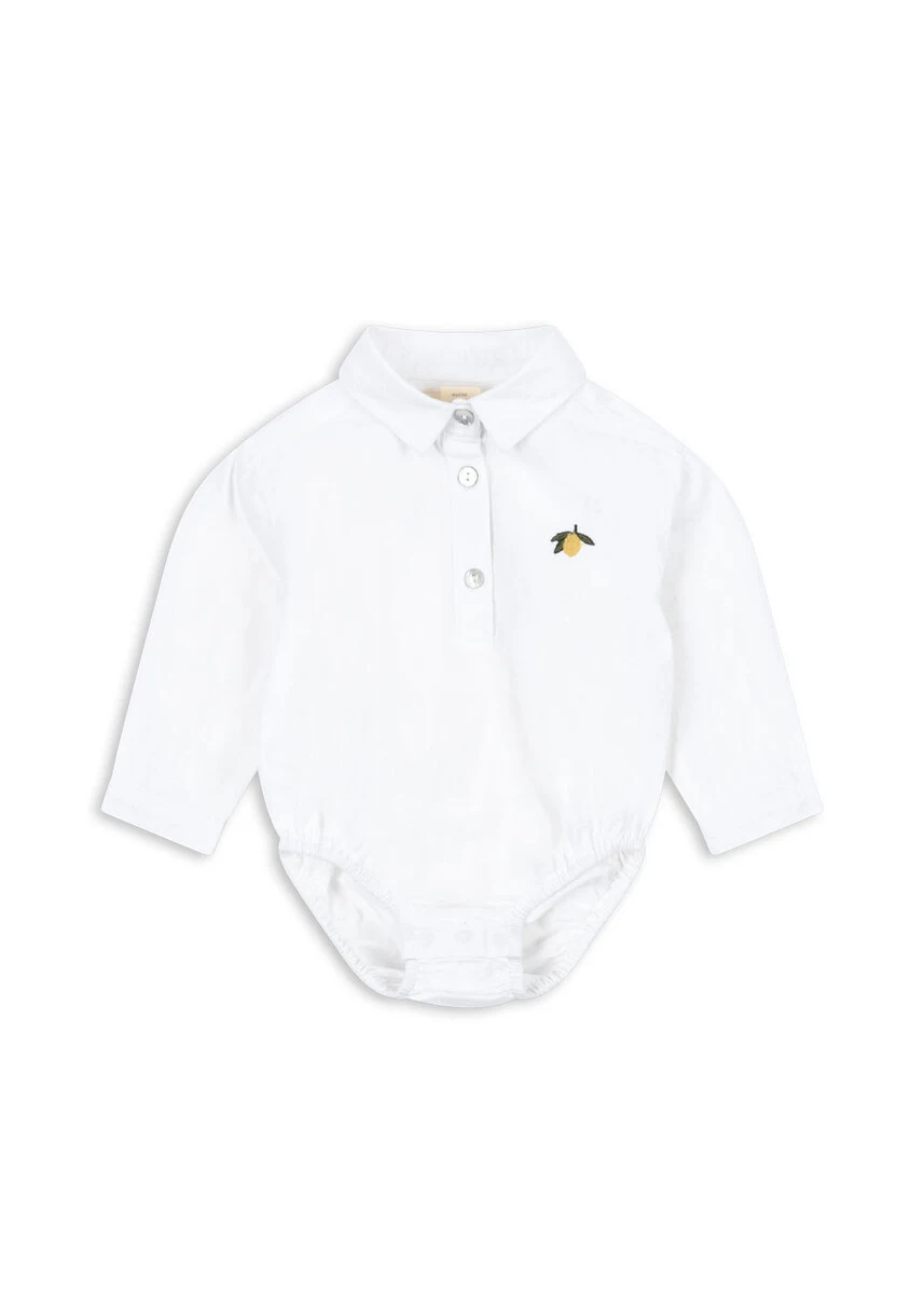 Sprød hvid skjorte med almindelig krave, smalle knapmanchetter og det karakteristiske citronprint på brystet.