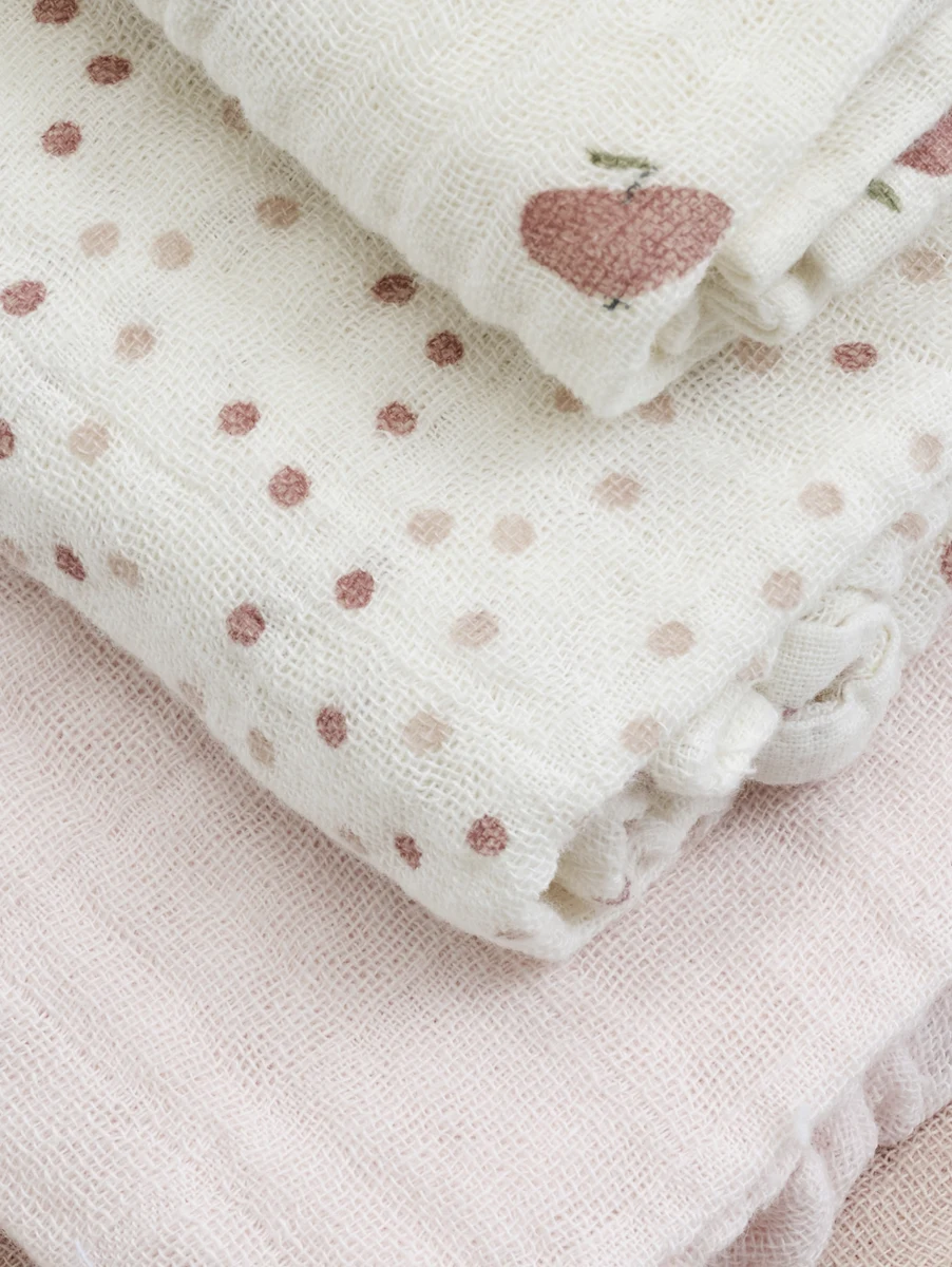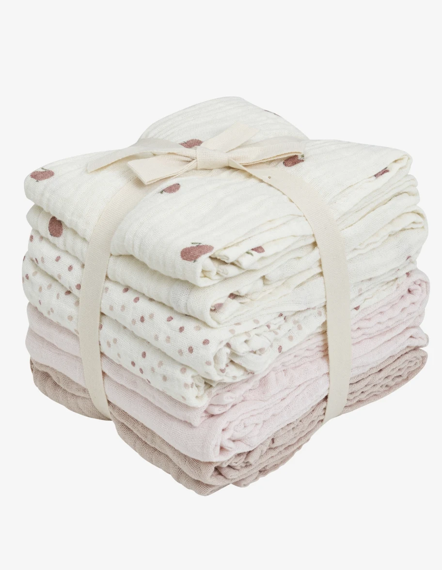 8-pak med musselinklude, med print, fra Pippi. Muslinkludene er lavet af økologisk bomuld.