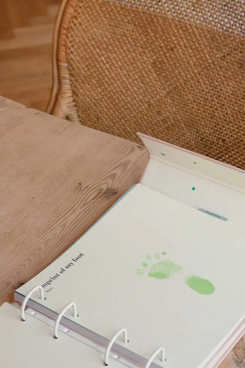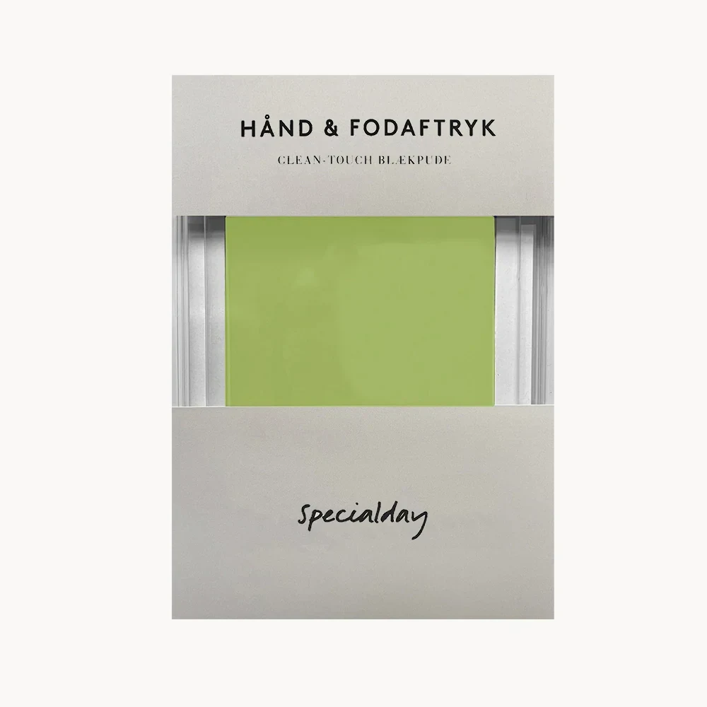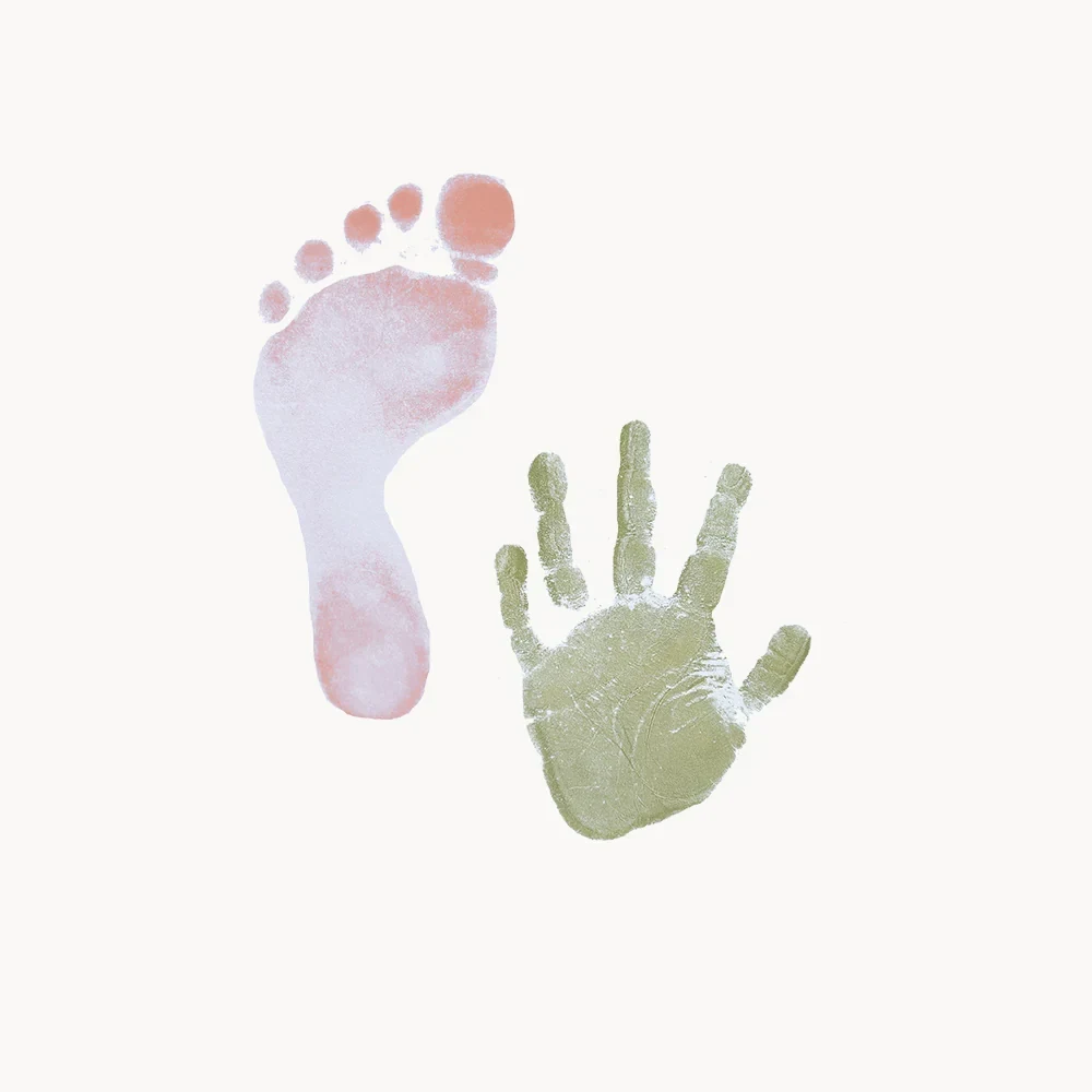 Hånd- og fodaftryk til baby og små børn i fine farver der passer til siderne i barnets bog fra Specialday.