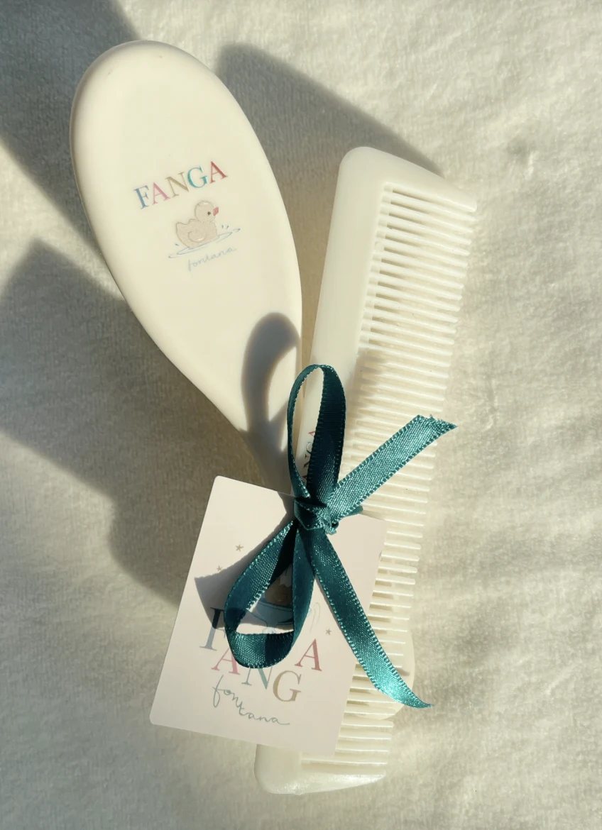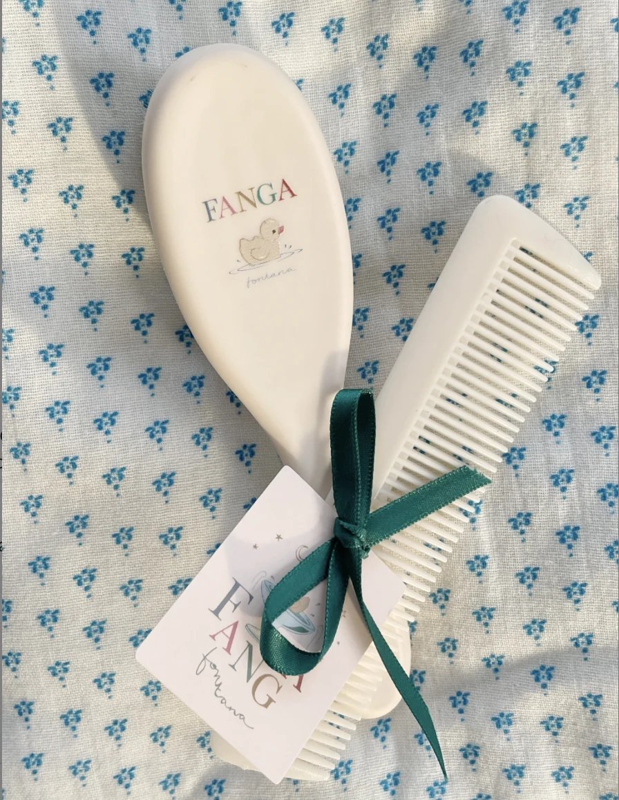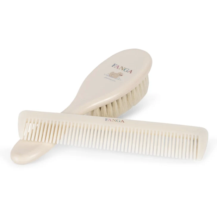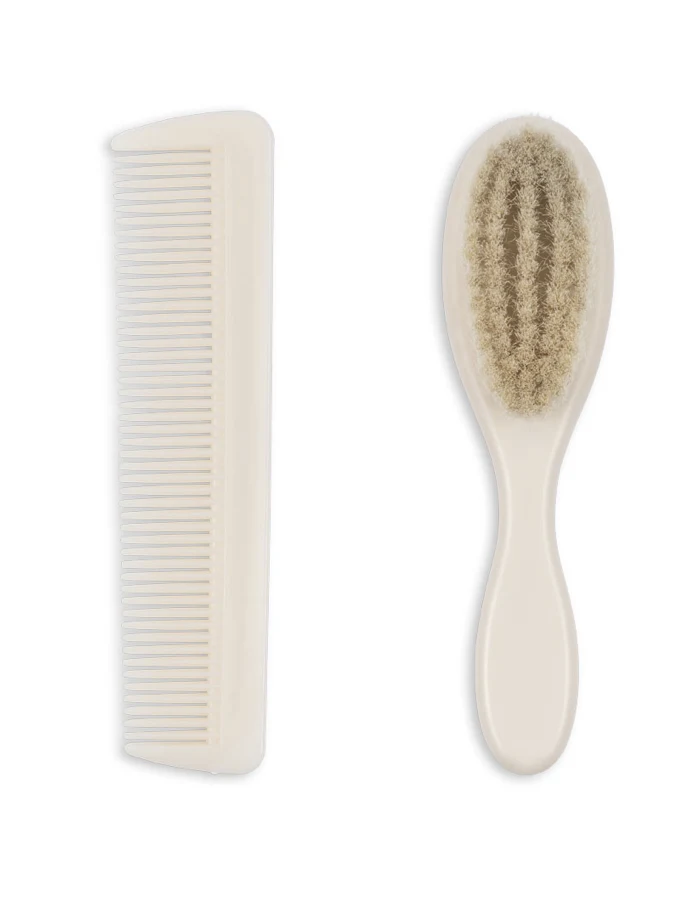 Sødt lille sæt til din babys første hårbørstning. Sættet indeholder en kam og en børste med de blødeste uldhår, der er skånsomme mod din babys sarte hud. Brug børsten og kammen til afslappende daglige hovedbundsmassager, der også hjælper med at forhindre "vuggehæs". Dette produkt er CE-mærket og opfylder EU's højeste sikkerheds-, sundheds- og miljøbeskyttelseskrav.